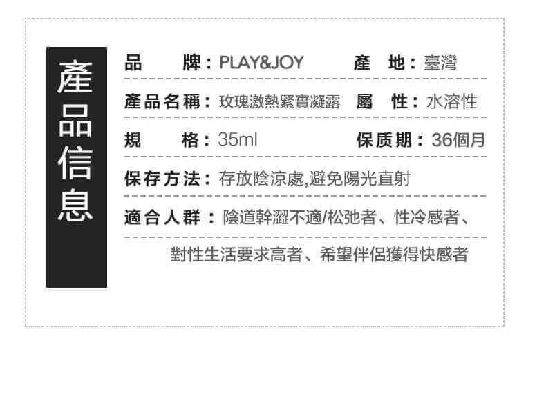 台灣製Play&Joy 玫瑰緊實精油激熱高潮液 35ML