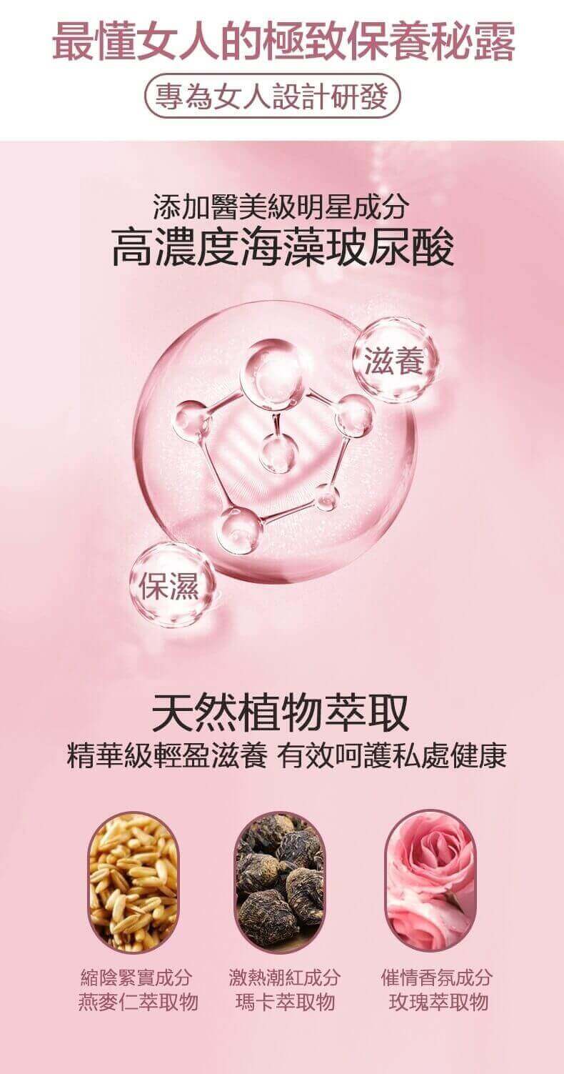 成份:瑪卡萃取物、玫瑰萃取物、燕麥仁萃取物、葡聚多醣體、海藻玻尿酸、純水、丙三醇、檸檬酸、檸檬酸鈉、乳酸、戊二醇、小麥萃取物