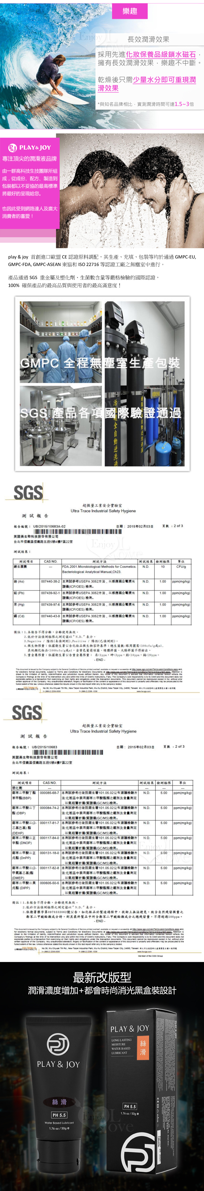 台灣第一品牌Play&Joy狂潮 絲滑基本型潤滑液 50g