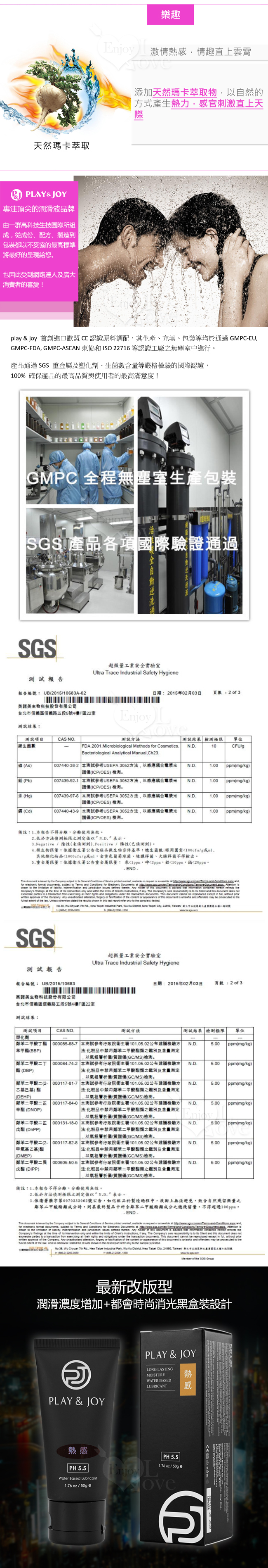 台灣第一品牌Play&Joy狂潮 熱感基本型潤滑液 50g(瑪卡粹取/超熱感)